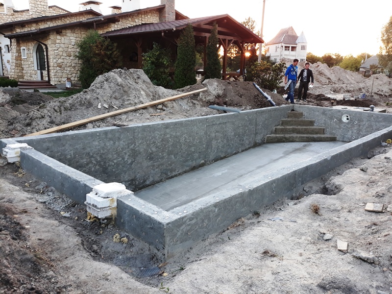 Монтаж закладных и установка прожектора установка трансформатора и эл. подключение |