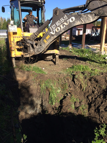 | Рытье котлована для септика трактором (экскаватором) с обратной заcыпкой смесью из песка и цемента |