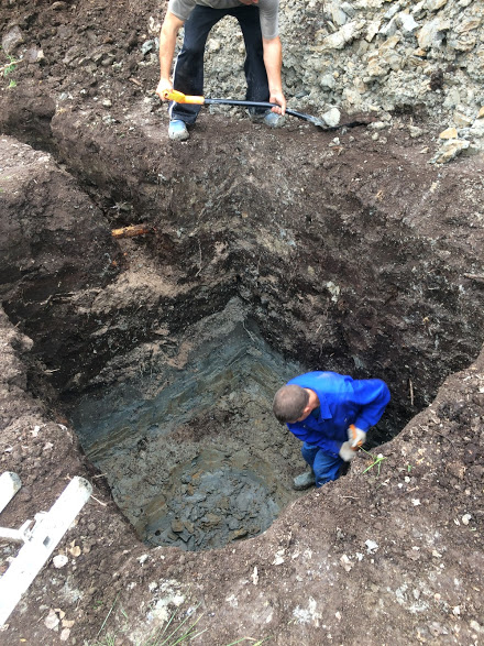 Рытье котлована для септика вручную с обратной засыпкой грунтом или песчано цементной смесью |